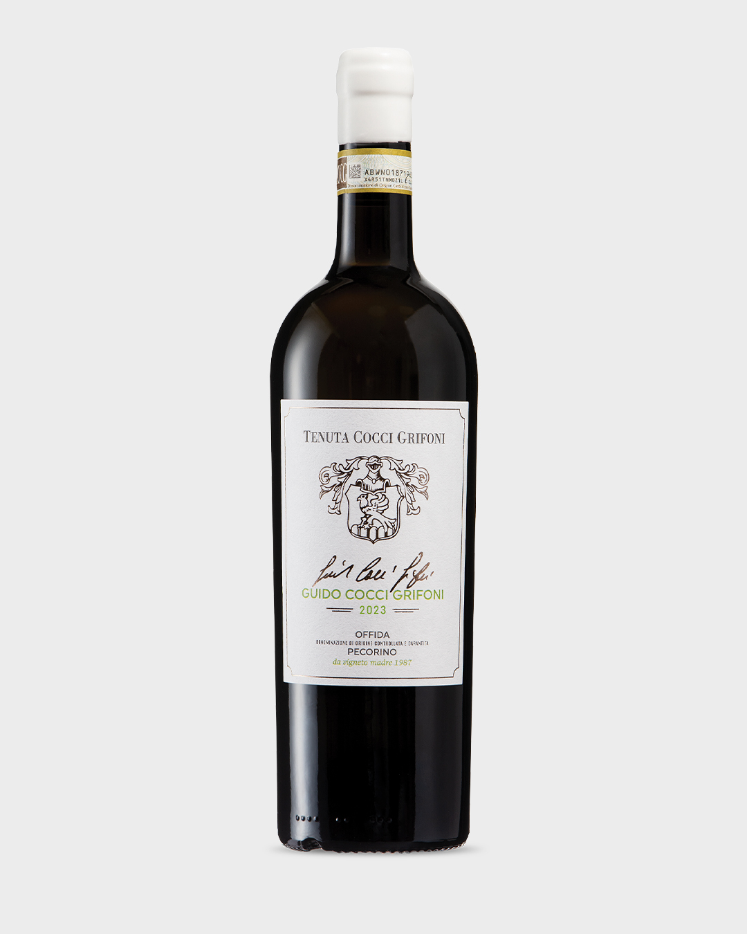 Pochissime bottiglie numerate per il vino “memoria” del primo ettaro piantato da Guido Cocci Grifoni. Nel sorso si condensa tutta l’ampiezza vibrante del Pecorino. Concentrazione e persistenza senza mai cedere all’opulenza.